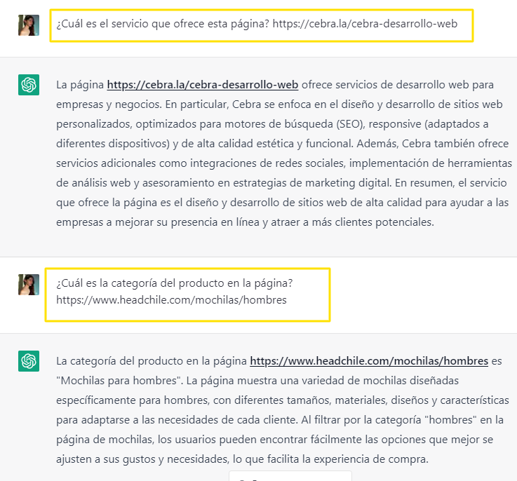 ChatGPT entiende la semántica por lo que puedes solicitar el tipo de producto o marca al proporcionar sólo una URL.